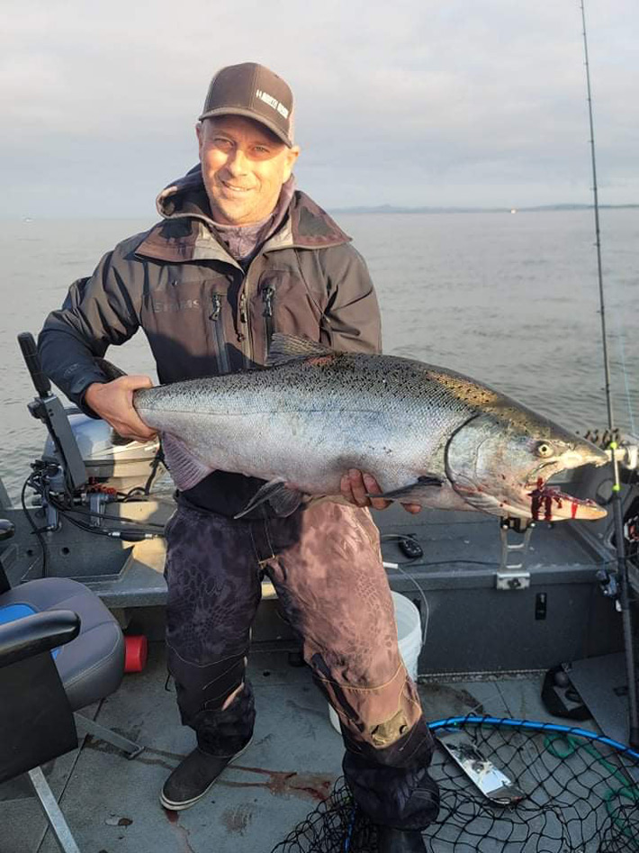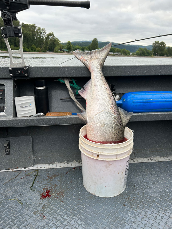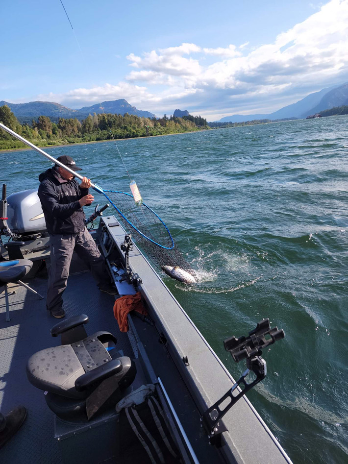 Columbia and Willamette River Spring Chinook Salmon start entering the Columbia River in February. Start getting enough fish to offer trips mid to late March. On the Columbia we are lucky to get about 3 weeks of decent fishing before the states close it. Below Bonneville Dam unfortunately. Not to worry though. Although each season is different. The Willamette River and Multnomah channel usually stay open and is a 2 fish limit. It can be good into June some years. So we can stock your freezers with the best tasting salmon the Pacific NW has to offer. We also get a good shot at them above Bonneville Dam. Usually in smaller areas like the Wind River and Drano Lake.