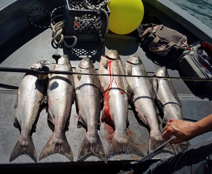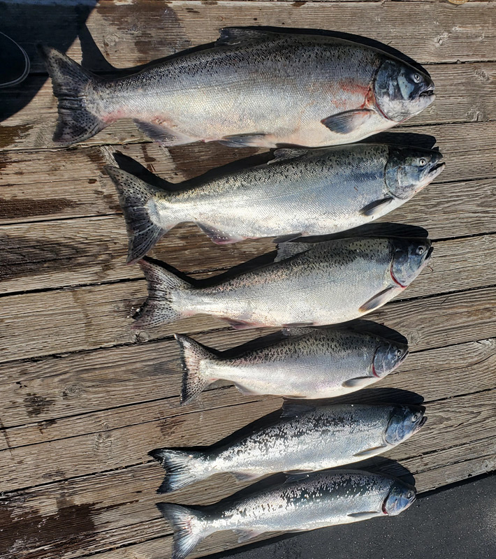 The Coho and Chinook salmon, also known as Silver Salmon and king salmon, is a highly sought-after species among anglers due to its delicious taste and strong fighting spirit. These sleek, silvery fish are known for their acrobatic displays, making for an exciting catch for both novice and experienced fishermen.